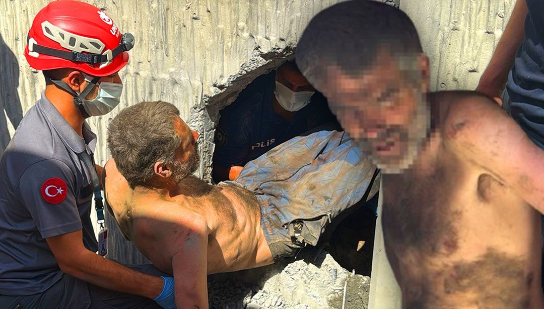 Mahsur kalan kişiye ulaşan polis ekipleri adamın yarı çıplak, bitkin ve vücudunun çeşitli yerlerinde yara izleri olduğunu gördü.